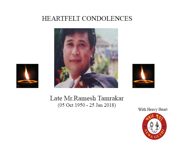 Newa Guthi, New York is very saddened by the news of sudden demise of “Mr.Ramesh Tamrakar” (05 Oct 1950 - 25 Jan 2018). In this miserable time, we would like to express our heartfelt condolences to Mrs. Srijana Tuladhar and her family members on their sudden loss of their beloved family "Ramesh Tamrakar"(brother in law).